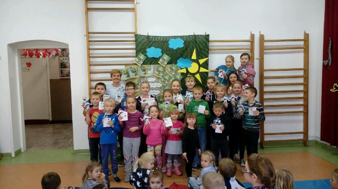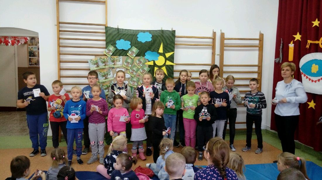 W piątek 30 listopada 2018 roku odbyło się spotkanie podsumowujące akcję Czytaj codziennie z Gangiem Słodziaków. Akcja miała na celu promowanie głośnego czytania dzieciom i przez dzieci. Każde dziecko za codzienne czytanie przez minimum 10 minut otrzymywało naklejkę Słodziaka. Dzieciom młodszym czytali dorośli. Akcja cieszyła się ogromnym powodzeniem. Najwytrwalsi czytelnicy otrzymali medal Słodziakowego Czytelnika oraz drobne upominki. Dla dzieci, którym nie udało się dotrwać do końca też były niespodzianki, które bedą im przypominać, że czytanie jest fajne. Uczestnicy spotkania doskonale bawili się przy piosence z ich ulubionymi słodziakowymi postaciami. Oczywiście nie zabrakło także głośnego czytania. Dzieci wysłuchały opowiadania o Sowie Zosi. Obiecały także, że codzienne czytanie wpisze się na stałe w plan ich dnia. Organizatorem przedsięwzięcia była pani Iwona Drużyńska.