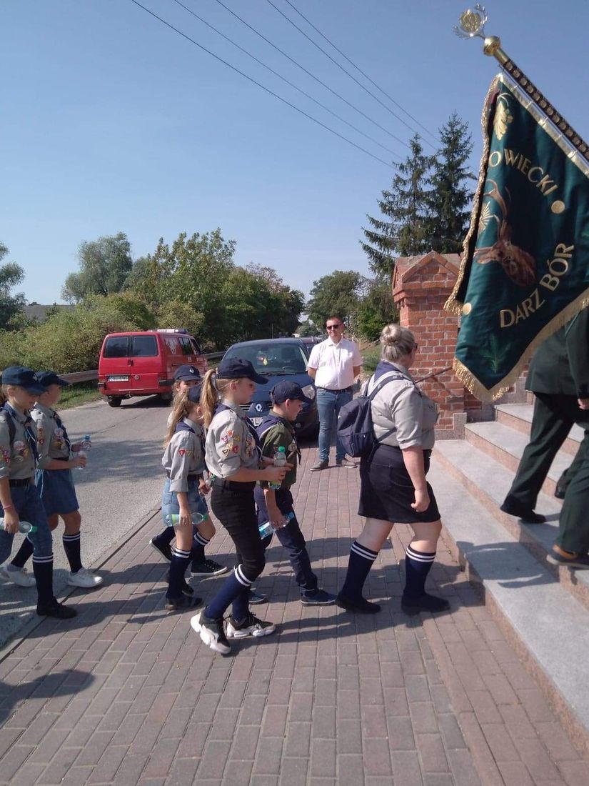 2019 09 10 obchody 11 września harcerze naszej szkoły włączyli się do obchodów 80 rocznicy wybuchu II wojny Światowej. Pełnili wartę przy Grobie Nieznanego Żołnierza podczas Gminnych uroczystości na cmentarzu, wzięli udział w przemarszu do kościoła oraz wystąpili z programem artystycznym.