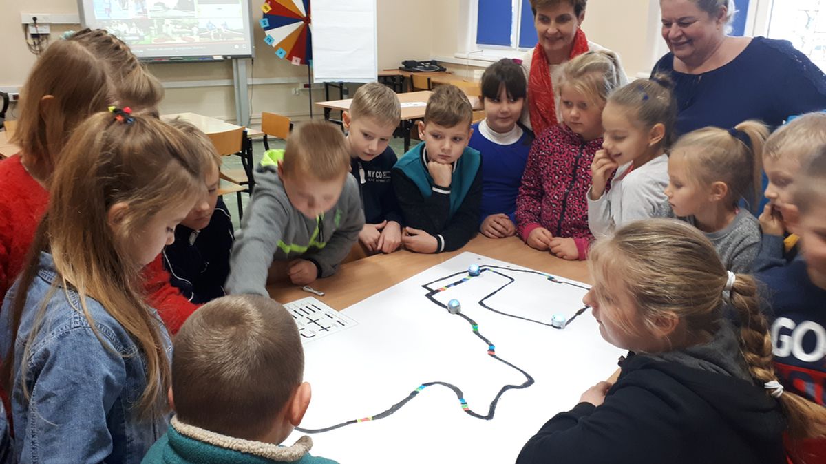 Zajęcia z robotykiUczniowie naszej szkoły uczestniczyli w warsztatach z robotyki. Wykonywali szereg zadań z programowania, wykorzystując nowoczesne technologie IT. Grupa młodsza (klasy I- III), pod opieką pani Violetty Świątkowskiej, programowała trasy dla ozobotów, za pomocą specjalnych kodów układając puzzle oraz rysując trasy. Grupa starsza( klasy IV- VIII), pod opieką pana Krzysztofa Haziaka oraz pani Iwony Drużyńskiej, wykorzystywała do programowania gry planszowo- mobilne Scottie Go!