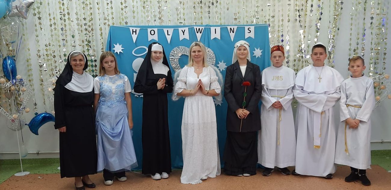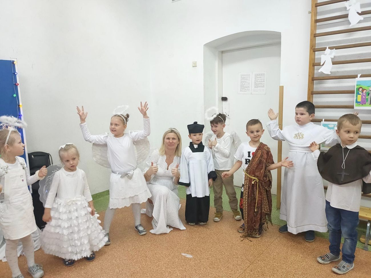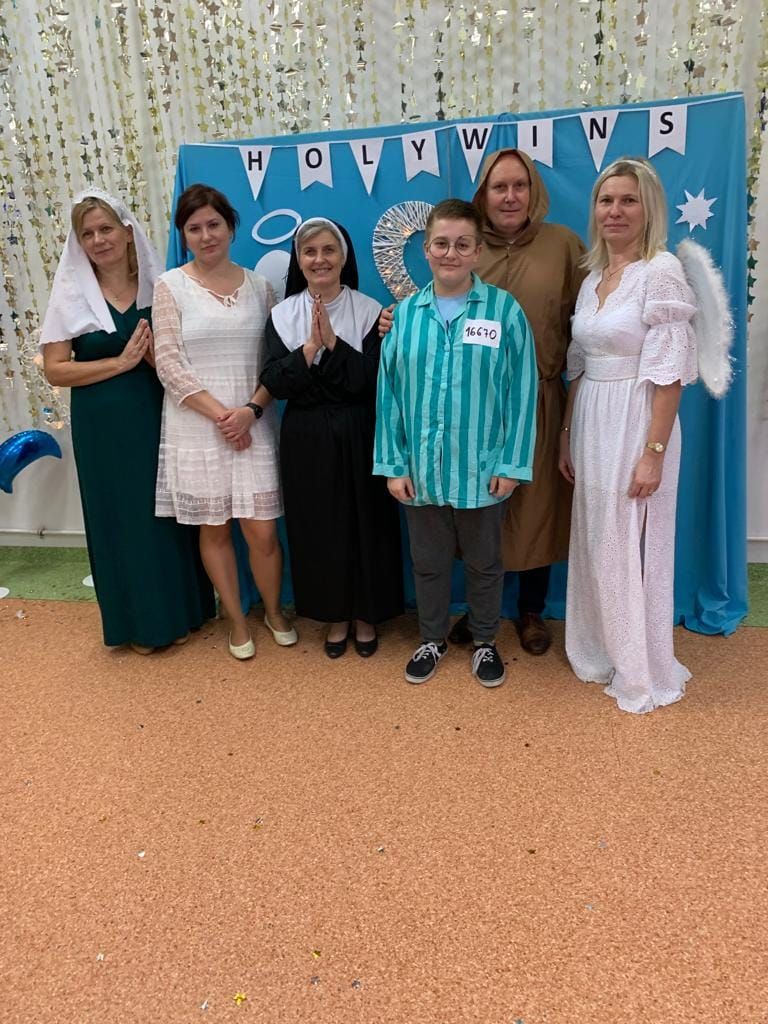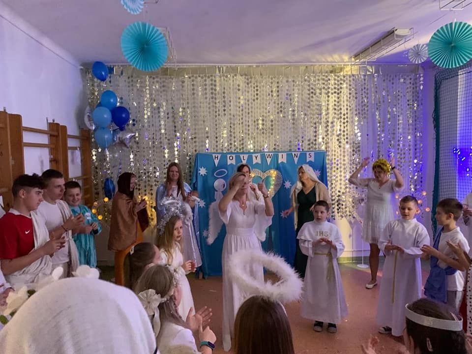 28 i 30 października w naszej szkole miał miejsce Bal Wszystkich Świętych, w czasie którego nasza sala gimnastyczna zamieniła się w niebo, i zapełniła się świętymi i błogosławionymi. Nie brakowało Aniołów, Maryi z Dzieciątkiem, Józefa, i wielu innych świętych i błogosławionych. W ten sposób uczciliśmy Uroczystość Wszystkich Świętych, która przypada 1 listopada. To radosny czas pamięci o naszych orędownikach w niebie, a przy okazji fantastyczna integracja i zabawa. Dziękujemy Wam kochane dzieci za piękne włączenie się w to radosne świętowanie. Dziękujemy Waszym wspaniałym rodzicom, że pomogli przygotować cudowne stroje, nauczycielom, panu Piotrowi Kordubskiemu za pomoc w dekoracji sali, wszystkim życzliwym, a nade wszystko proboszczowi naszej parafii księdzu Henrykowi Chabasińskiemu, dzięki któremu sala wyglądała tak pięknie, a dzieci miały poczęstunek i niespodzianki.