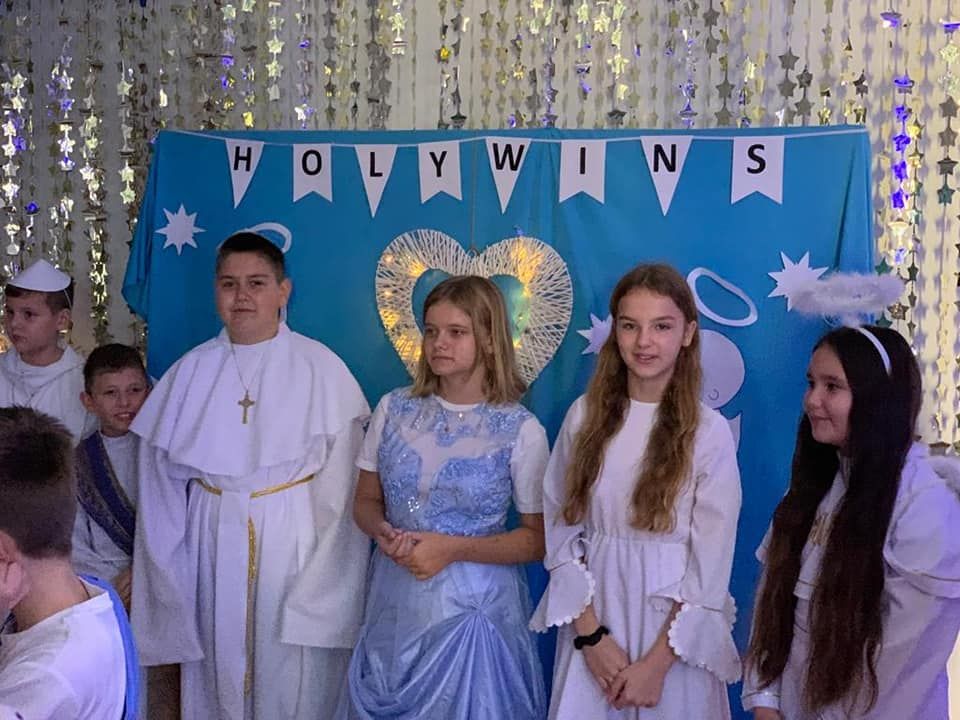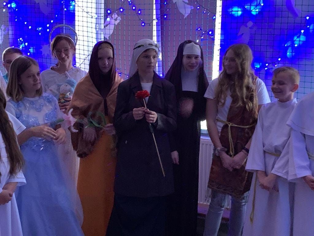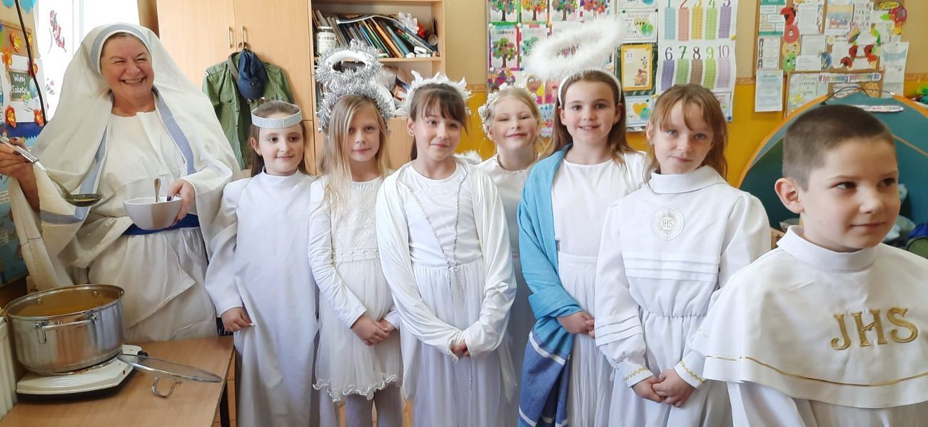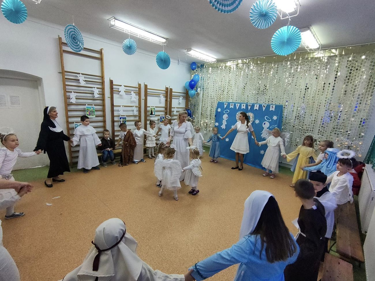 28 i 30 października w naszej szkole miał miejsce Bal Wszystkich Świętych, w czasie którego nasza sala gimnastyczna zamieniła się w niebo, i zapełniła się świętymi i błogosławionymi. Nie brakowało Aniołów, Maryi z Dzieciątkiem, Józefa, i wielu innych świętych i błogosławionych. W ten sposób uczciliśmy Uroczystość Wszystkich Świętych, która przypada 1 listopada. To radosny czas pamięci o naszych orędownikach w niebie, a przy okazji fantastyczna integracja i zabawa. Dziękujemy Wam kochane dzieci za piękne włączenie się w to radosne świętowanie. Dziękujemy Waszym wspaniałym rodzicom, że pomogli przygotować cudowne stroje, nauczycielom, panu Piotrowi Kordubskiemu za pomoc w dekoracji sali, wszystkim życzliwym, a nade wszystko proboszczowi naszej parafii księdzu Henrykowi Chabasińskiemu, dzięki któremu sala wyglądała tak pięknie, a dzieci miały poczęstunek i niespodzianki.