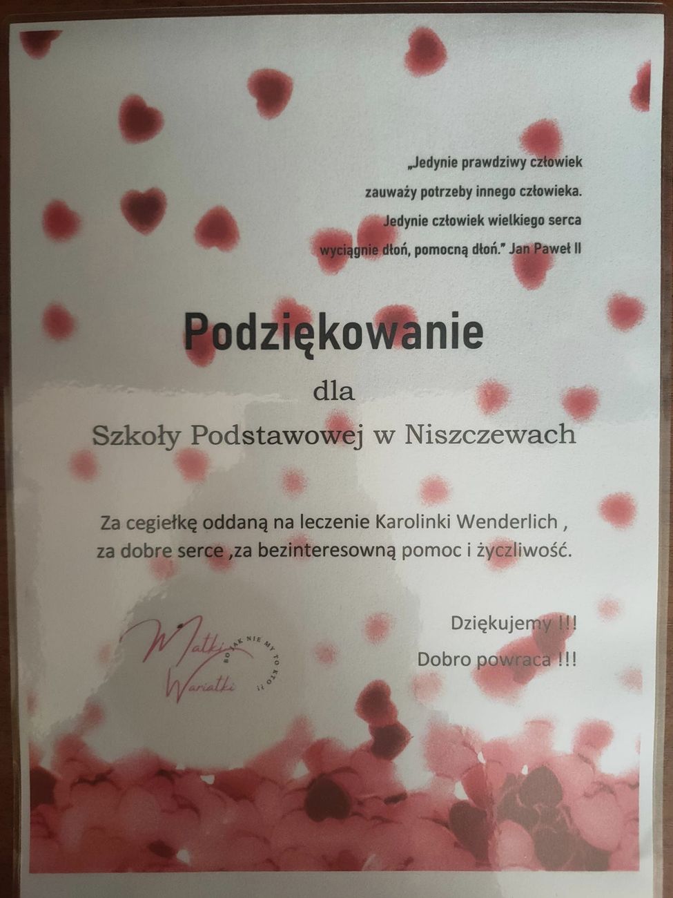 W piątek 4.11.2022r. Przedszkolaki i młodsi uczniowie naszej szkoły wzięli udział w przedstawieniu w wykonaniu Amatorskiej Grupy Teatralnej "Matki Wariatki" - "Śmiech to zdrowie - nasza bajka Ci to powie". Było to wydarzenie charytatywne, którego celem była pomoc Karolince Wenderlich. Po przedstawieniu grupa wybrała się do parku i na plac zabaw.  Dziękujemy Wójtowi Gminy Waganiec panu Piotrowi Kosik oraz Przewodniczącej Rady Gminy Waganiec pani Patrycji Smykowskiej za darmowy transport dzieci do Włocławka. Dziękujemy rodzicom i pamiętajmy, że dobro wraca.