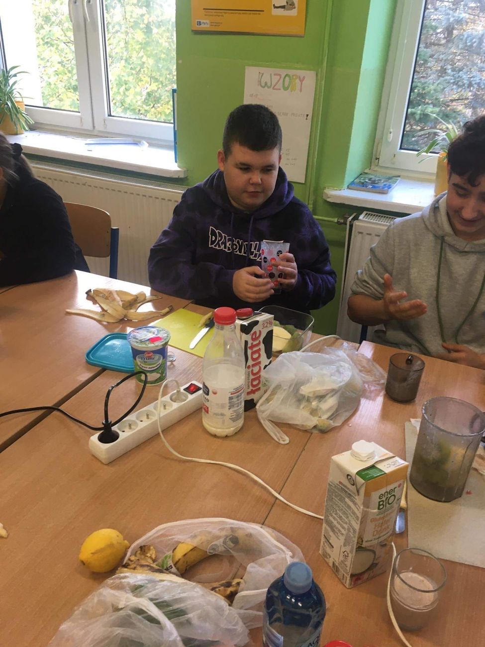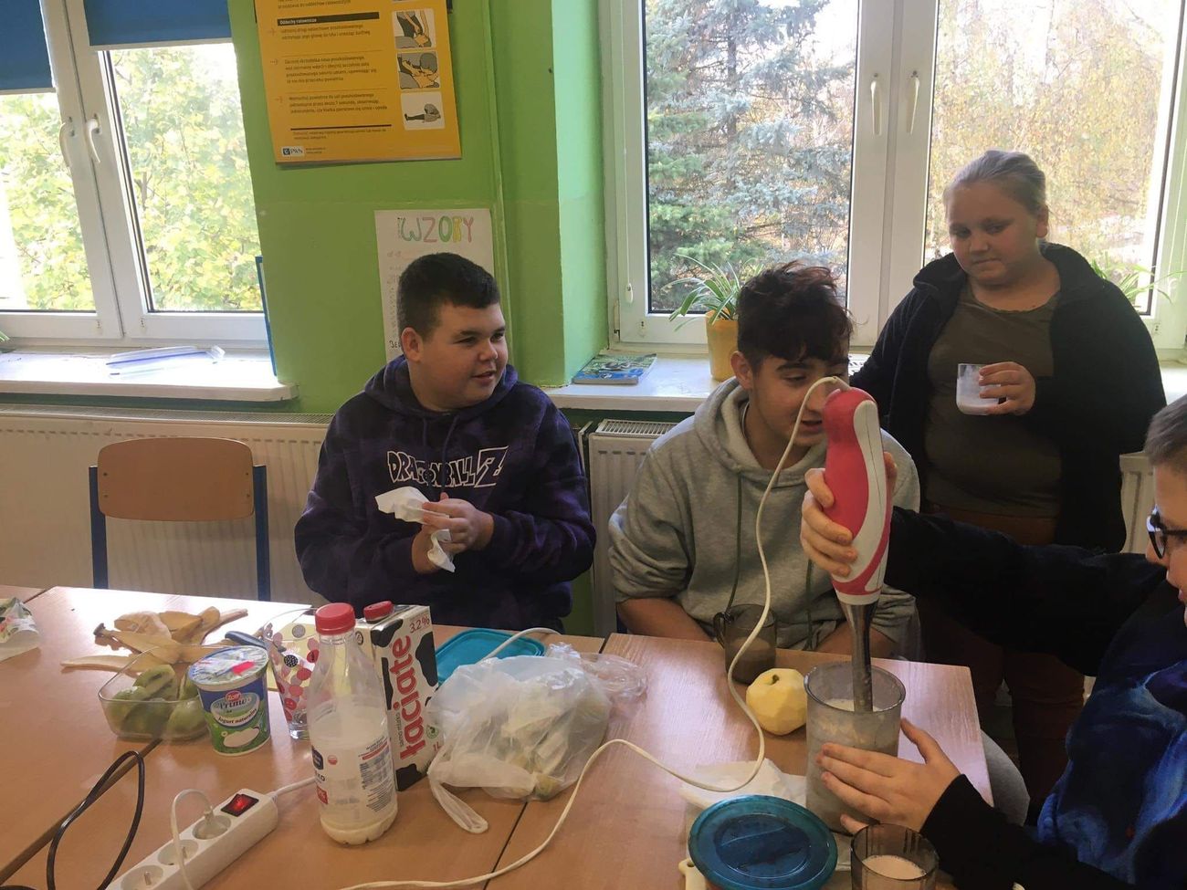 Klasy: 7 i 8 wraz z wychowawcą p. Agnieszką Niedziałkowską, w tym roku przygotowywały pyszne koktajle mleczno owocowe, a nawet z dodatkiem warzyw. Wszystkie były bardzo smaczne i bardzo zdrowe.