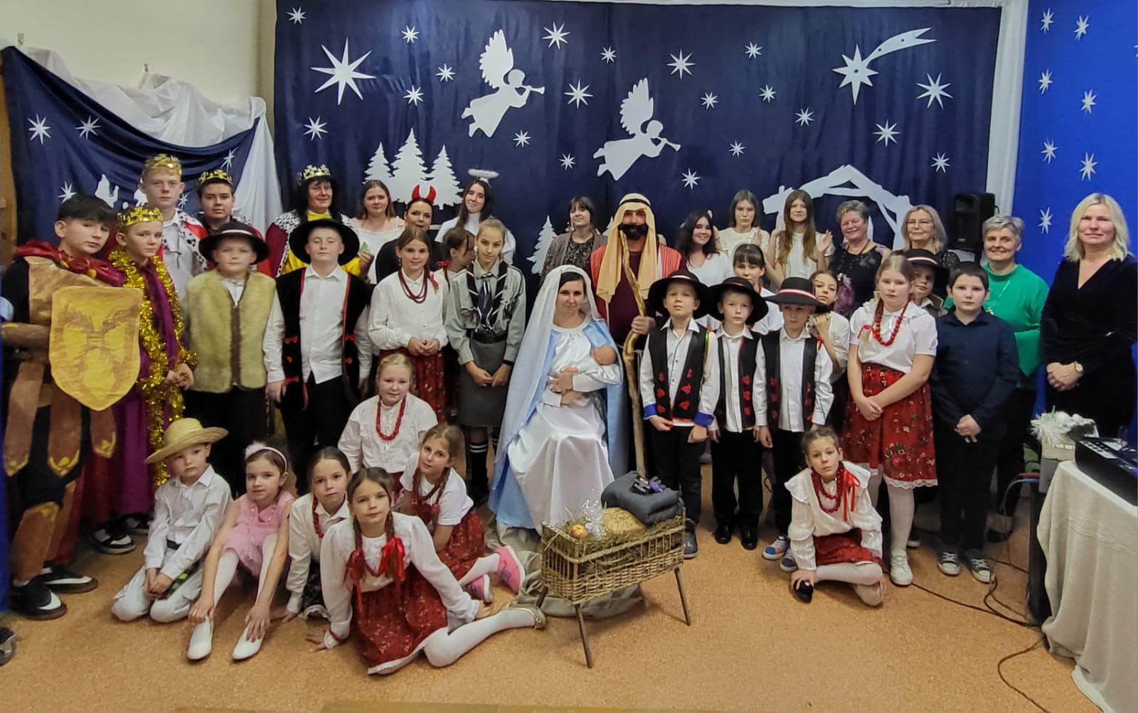 Nie byłoby przedstawienia bez aktorów - wszyscy wypadliście znakomicie . To piękna wieloletnia już tradycja w naszej szkole, że dorośli wspólnie z dziećmi przypominają nam to ważne wydarzenie, sprzed dwóch tysięcy lat . Bo wspólne dzieło, to piękne dzieło .